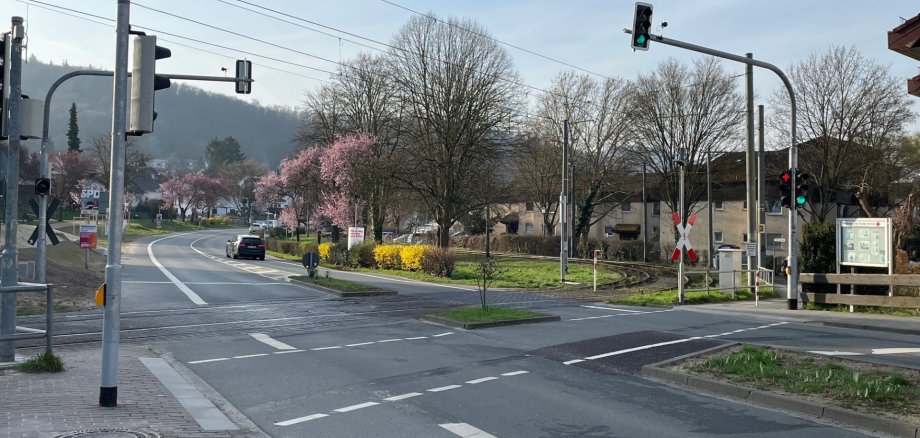 Auf dem Bild: Die neue Ampelanlage (Querung Heag Mobilo) mit behindertengerechtem Übergang an der Heidelberger Straße in Seeheim in Höhe des Forums am Rathaus. Ein Blindenleitsystem soll noch folgen.