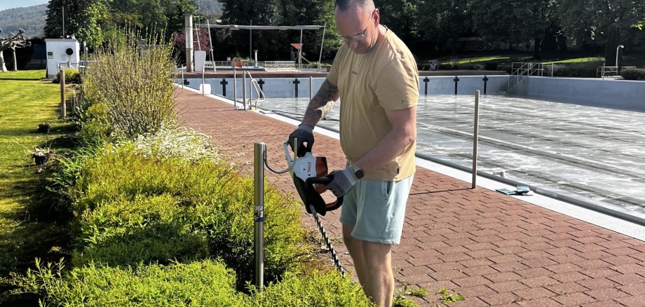 Die Eröffnung des Freibads am 14. Mai steht kurz bevor und Badleitung wie Betriebshof sind mit den letzten Vorbereitungen beschäftigt. Wie in den Vorjahren werden sie dabei vom Schwimmbadverein mit Arbeitseinsätzen unterstützt. Beim ersten Termin am 17. April stand das Thema Grünpflege an. Zwölf Vereinsmitglieder waren dabei zu Gange - ein ganz herzliches Dankeschön für dieses tolle ehrenamtliche Engagement!